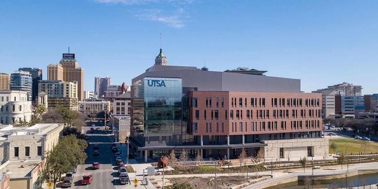 Seamlessly integrated into UTSA’s Downtown Campus expansion, San Pedro II will work in tandem with academic programs and research collaborations in cybersecurity and data science, which are offered across San Pedro Creek in San Pedro I by the School of Data Science and the National Security Collaboration Center. San Pedro I, which opened in January 2023, and San Pedro II are part of larger placemaking efforts to connect interior classrooms and meeting spaces with outdoor venues, public art and greenspaces along San Pedro Creek.